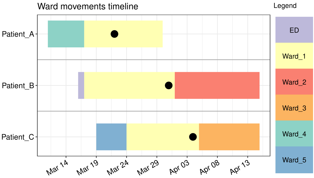 ggplot2 outputtimeline_data <- data.frame(event = c("Event 1", "Event 2"),