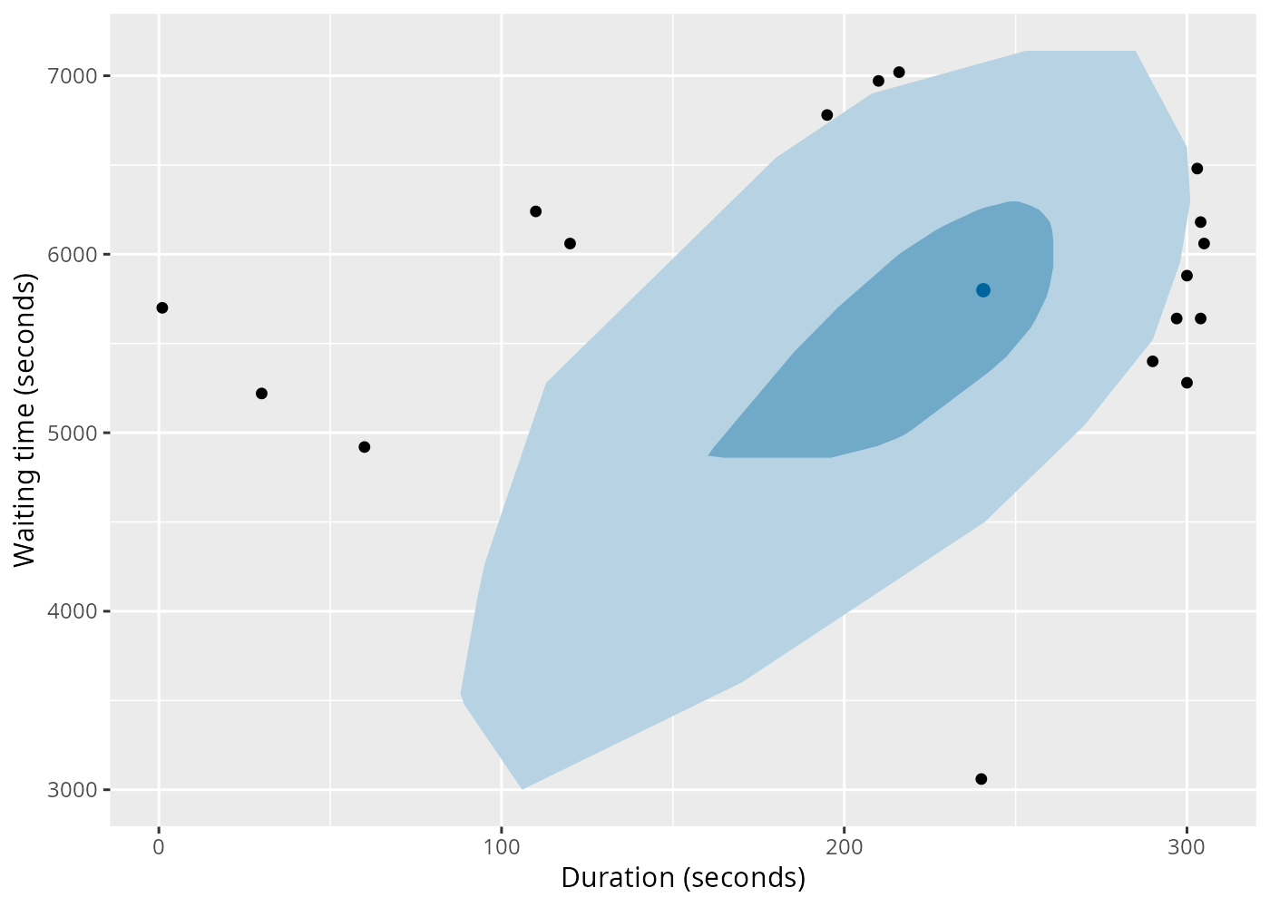 gg_bagplot(duration, waiting, show_points = TRUE) +