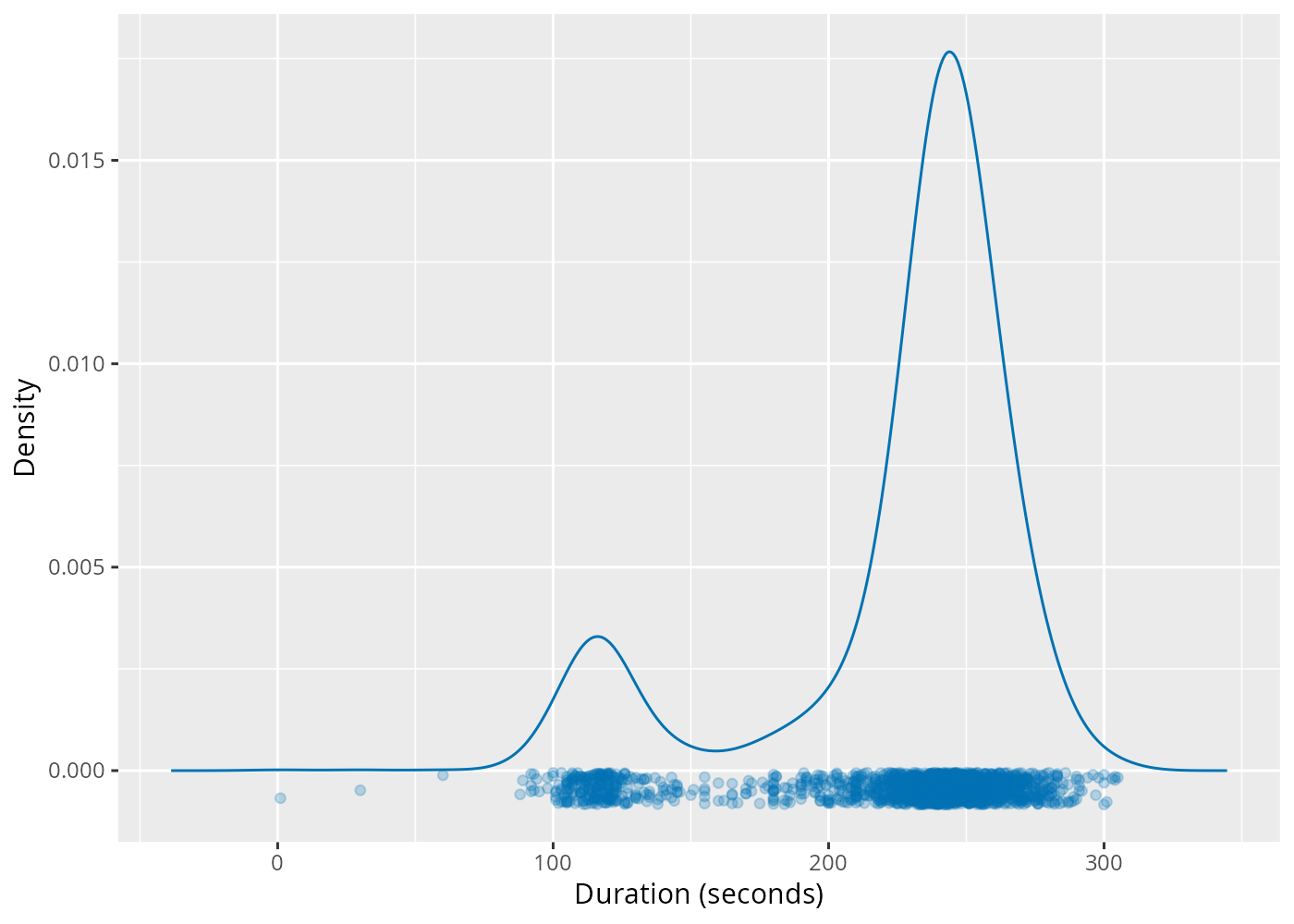 labs(x = "Duration (seconds)", y = "Waiting time (seconds)")
