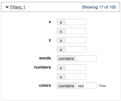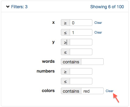To clear the filters just click "Clear". For example, you could turn off just the "red" filter: