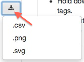 There are three types of downloads available. Each one will download the data in a way that reflects the current state of filters and tags. To download simply click on the download button (pictured at right) and choose the download you want.