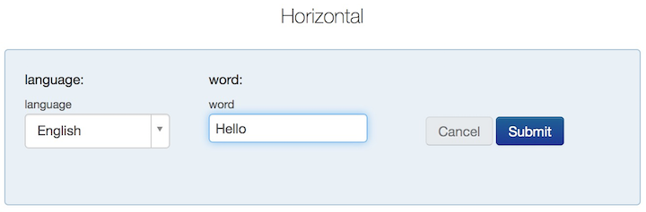 The form is initialized with the last language (Wolof) and word ("Merhbe"). This is the normal behavior for regular persistent parameters. Now, to demonstrate the conditional persistence, let's switch to English: