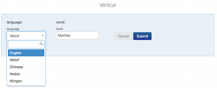 choices = c("English","Wolof","Chinese","Arabic","Klingon"),