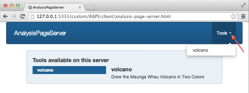 Click on "volcano" (either on the main landing page or in the "Tools" menu) to go to its "primary parameter area".