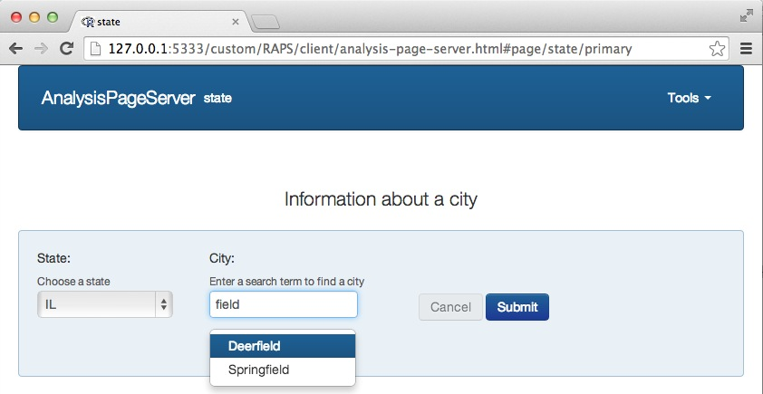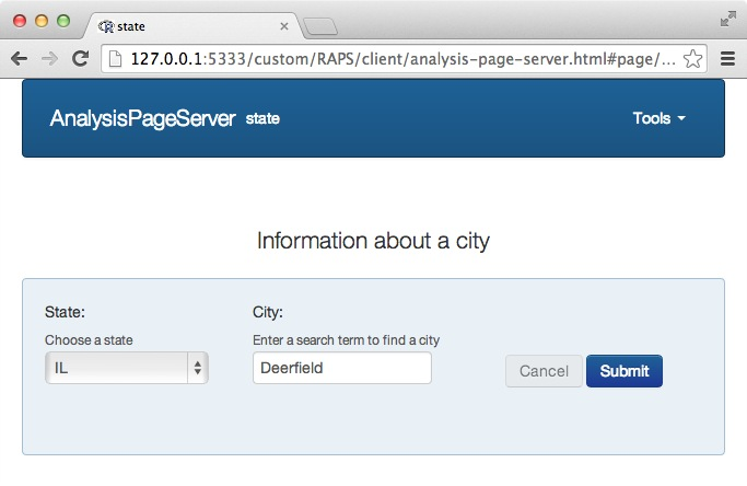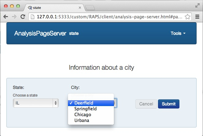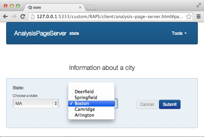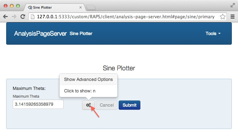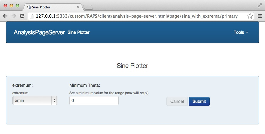 Using the complete AnalysisPageServer system we can build an application that not only combines these two features—customization via parameters and plot/data interactivity—but also features a user interface to select parameter values.