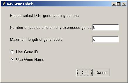 Now you can select a number of differentially expressed genes to be labeled on the plot and the maximum label size in characters.