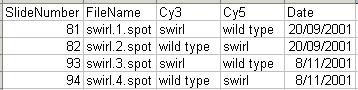 The GAL file should be stored in tab-delimited text. Part of the GAL file for the Swirl data set is shown below.