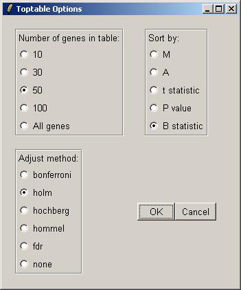 From the TopTable menu, click on "Table of Genes Ranked in order Of Differential Expression".