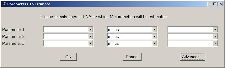 Now we will compute a linear model for this set of arrays, using the IA parameterization. After clicking on "Compute Linear Model Fit" from the Linear Model menu, limmaGUI will ask us whether we want to create a new parameterization. Select "No", i.e. we don't want to create a new parameterization, because we want to use the IA parameterization which we have already created.