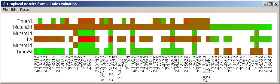 heatdiagram(abs(eb$t),fit$coef,"Mutant21",names=gal$Name)