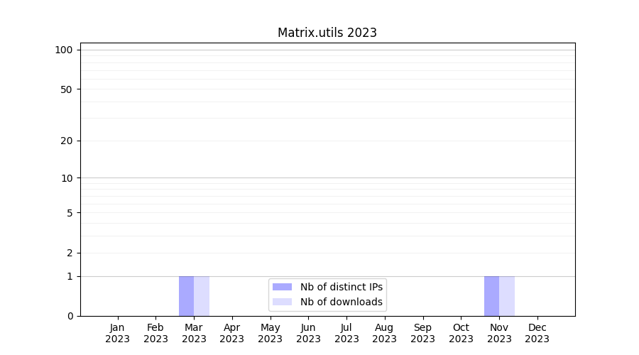 Number of downloads for software package Matrix.utils, year by year, from 2025 back to 2014 (years with no downloads are omitted):