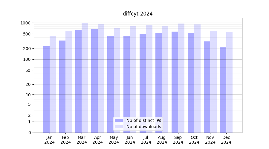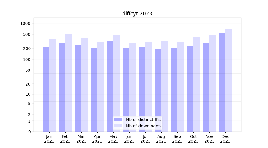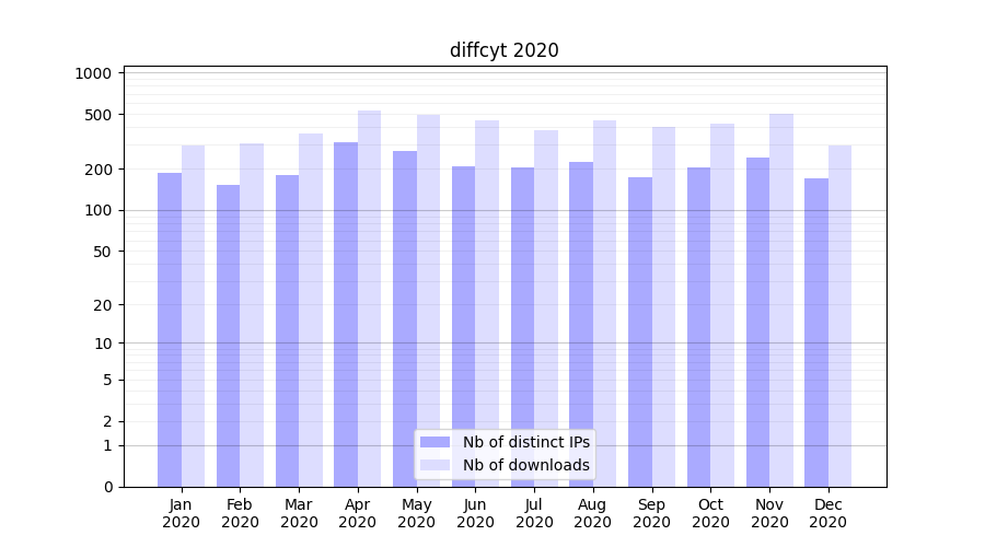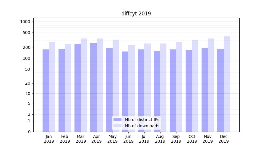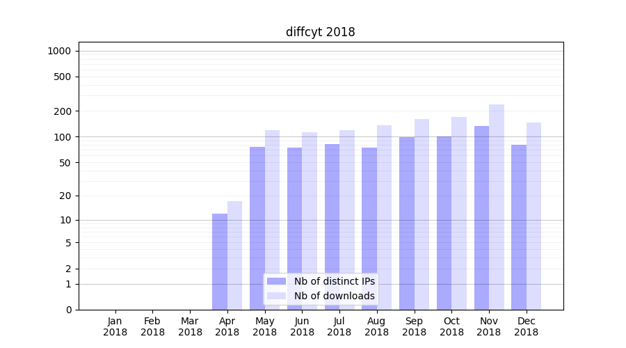 Month | Nb of distinct IPs | Nb of downloads |