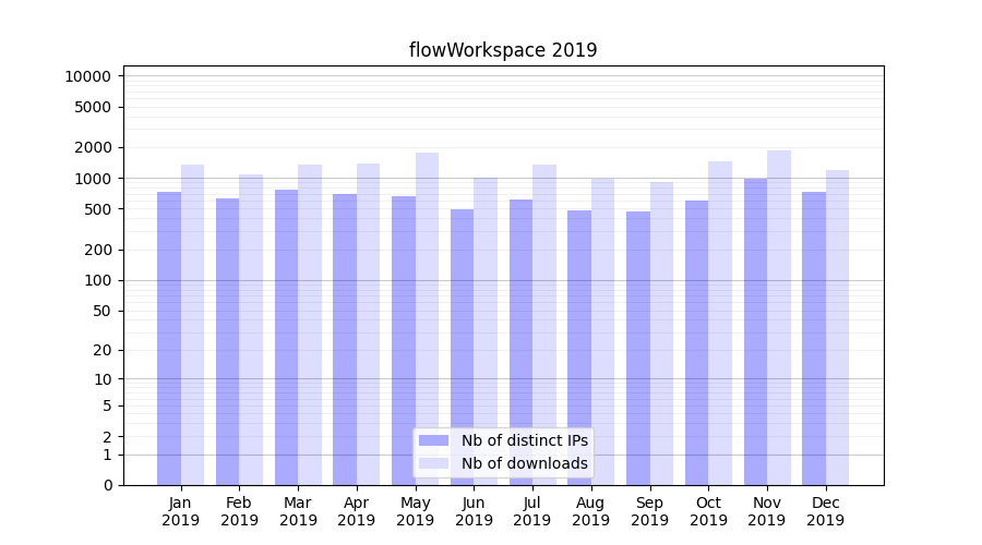 Month | Nb of distinct IPs | Nb of downloads |