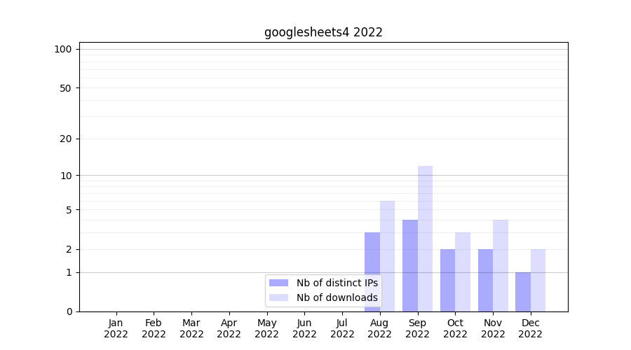Download stats for software package googlesheets4