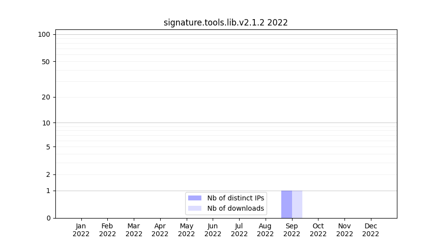 Number of downloads for software package signature.tools.lib.v2.1.2, year by year, from 2025 back to 2014 (years with no downloads are omitted):