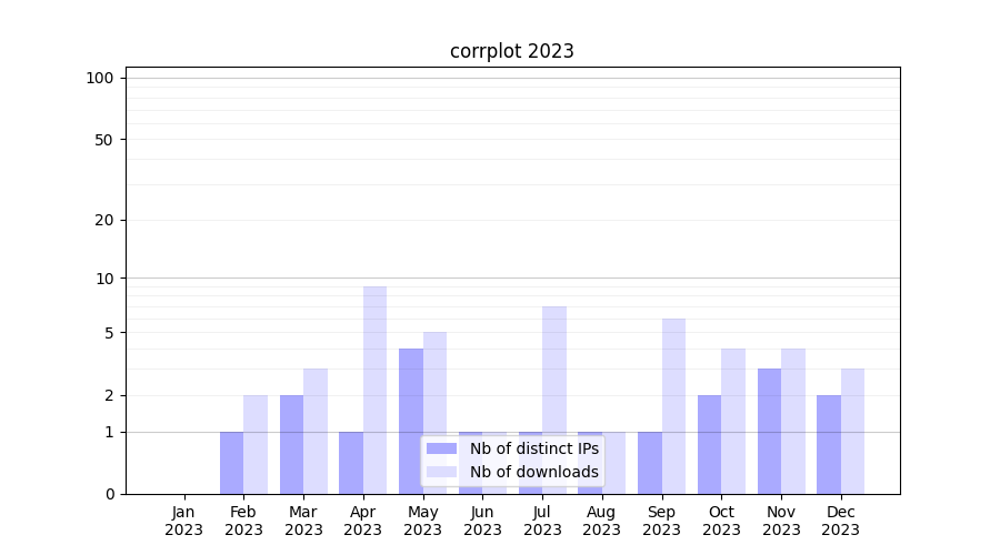 Month | Nb of distinct IPs | Nb of downloads |