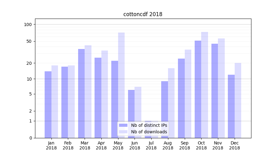 | Month | Nb of distinct IPs | Nb of downloads |