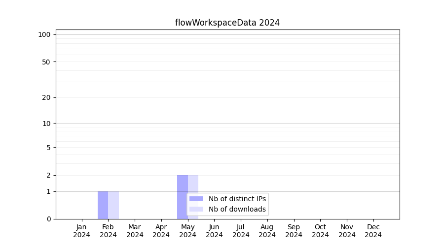 Number of downloads for annotation package flowWorkspaceData, year by year, from 2025 back to 2014 (years with no downloads are omitted):