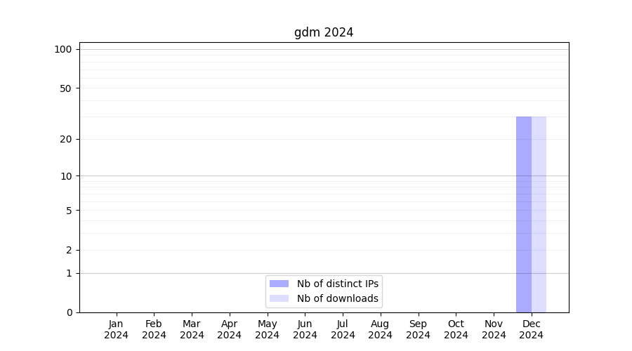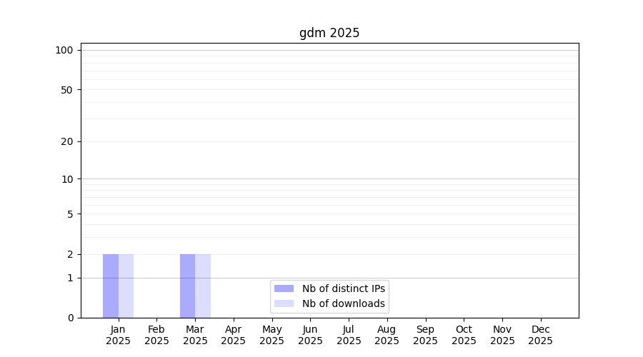 Number of downloads for annotation package gdm, year by year, from 2025 back to 2014 (years with no downloads are omitted):