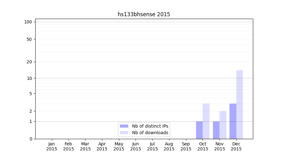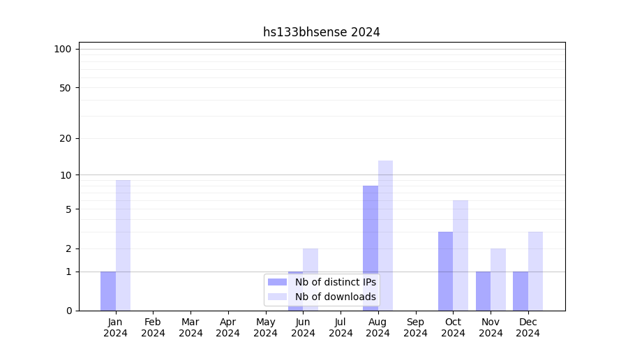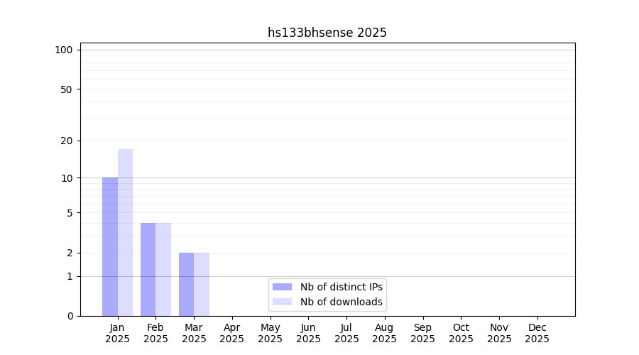 Number of downloads for annotation package hs133bhsense, year by year, from 2025 back to 2014 (years with no downloads are omitted):