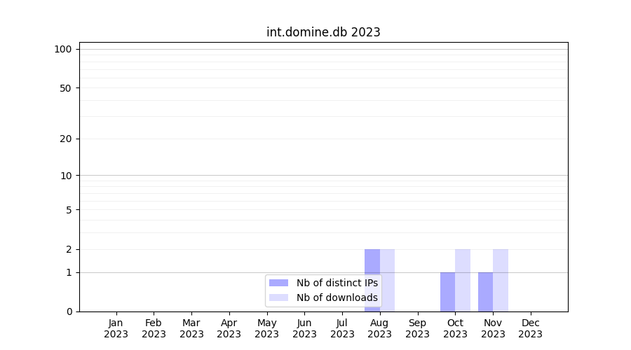 Number of downloads for annotation package int.domine.db, year by year, from 2025 back to 2014 (years with no downloads are omitted):