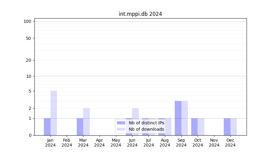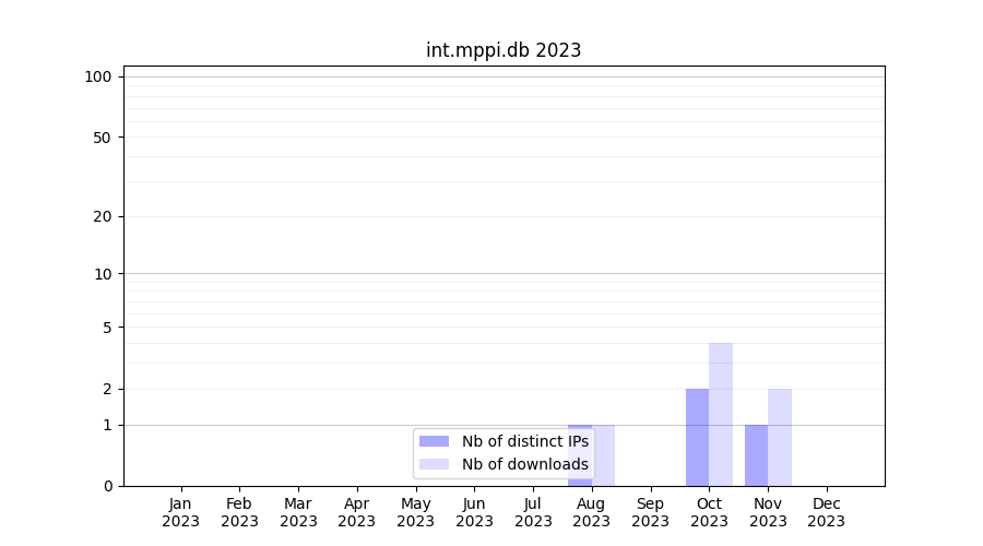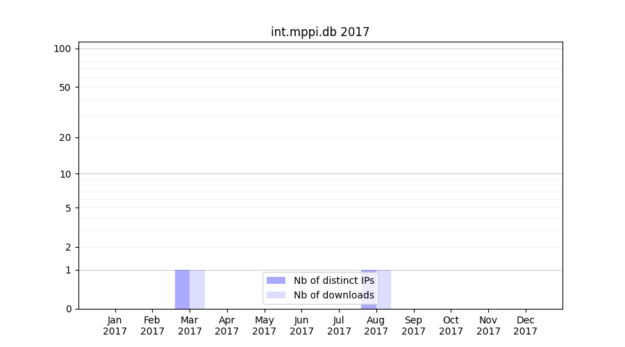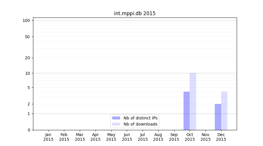 Number of downloads for annotation package int.mppi.db, year by year, from 2025 back to 2014 (years with no downloads are omitted):