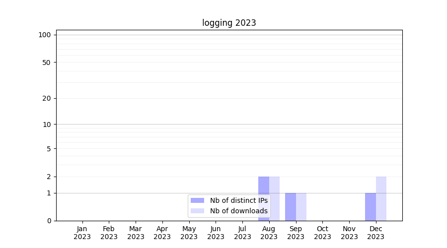 Number of downloads for annotation package logging, year by year, from 2025 back to 2014 (years with no downloads are omitted):