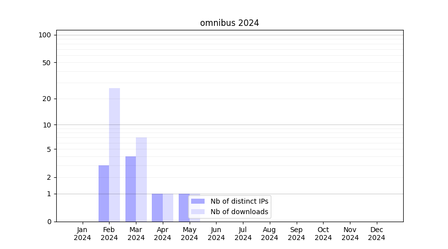 Number of downloads for annotation package omnibus, year by year, from 2025 back to 2014 (years with no downloads are omitted):