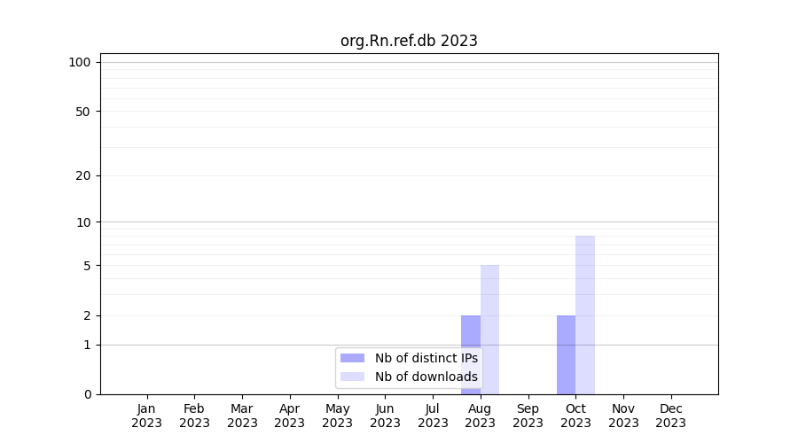Number of downloads for annotation package org.Rn.ref.db, year by year, from 2025 back to 2014 (years with no downloads are omitted):
