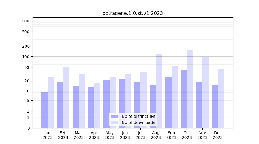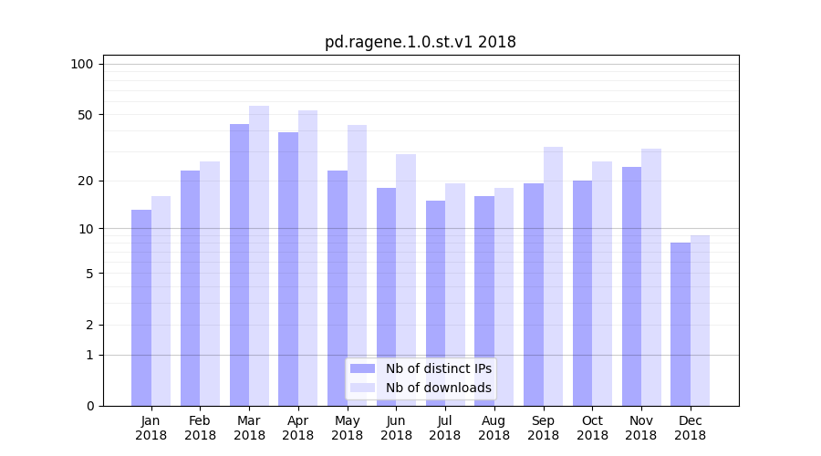 Month | Nb of distinct IPs | Nb of downloads |