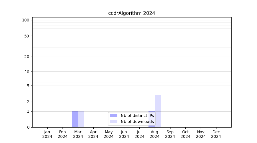 Number of downloads for experiment package ccdrAlgorithm, year by year, from 2025 back to 2014 (years with no downloads are omitted):
