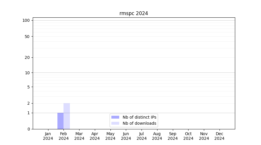 Number of downloads for experiment package rmspc, year by year, from 2025 back to 2014 (years with no downloads are omitted):