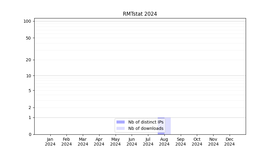 Number of downloads for workflow package RMTstat, year by year, from 2025 back to 2015 (years with no downloads are omitted):
