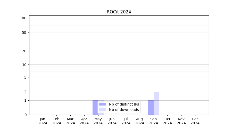 Number of downloads for workflow package ROCit, year by year, from 2025 back to 2015 (years with no downloads are omitted):
