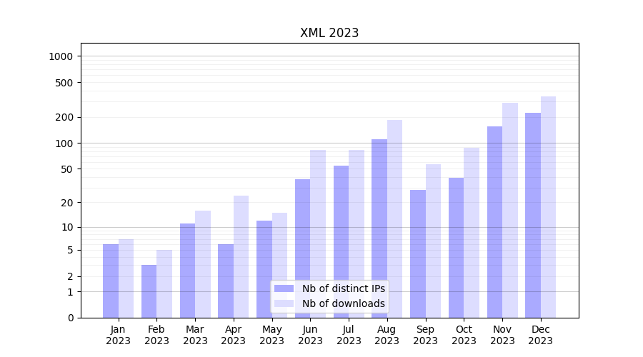 Month | Nb of distinct IPs | Nb of downloads |