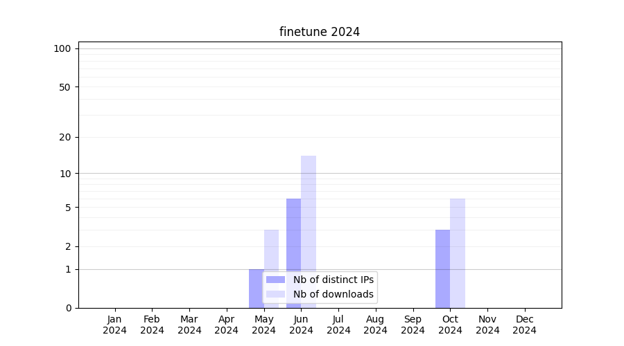 Number of downloads for workflow package finetune, year by year, from 2025 back to 2015 (years with no downloads are omitted):