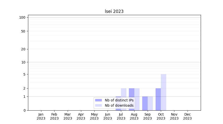 Number of downloads for workflow package lsei, year by year, from 2025 back to 2015 (years with no downloads are omitted):