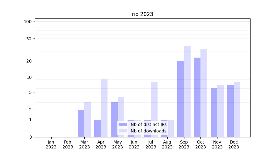 | Month | Nb of distinct IPs | Nb of downloads |
