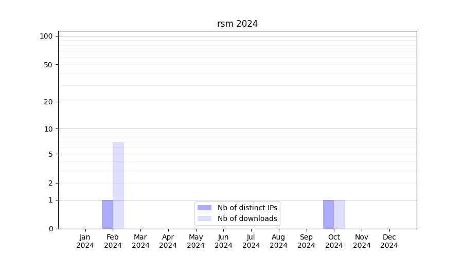 Number of downloads for workflow package rsm, year by year, from 2025 back to 2015 (years with no downloads are omitted):