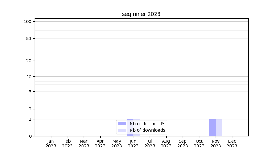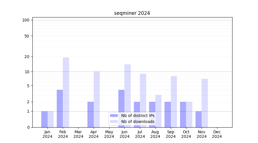 Number of downloads for workflow package seqminer, year by year, from 2025 back to 2015 (years with no downloads are omitted):