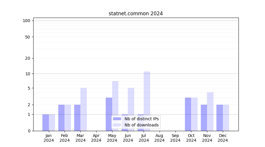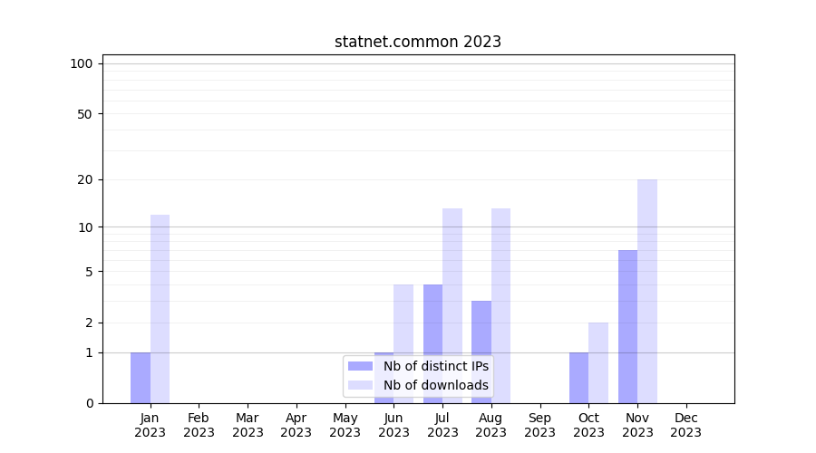 Number of downloads for workflow package statnet.common, year by year, from 2025 back to 2015 (years with no downloads are omitted):