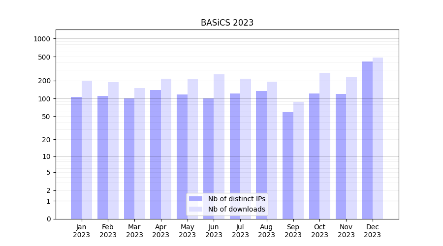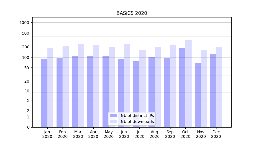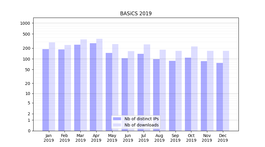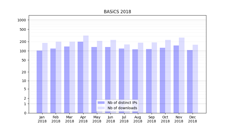 | Month | Nb of distinct IPs | Nb of downloads |