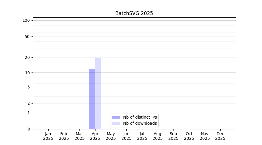 Number of downloads for software package BatchSVG, year by year, from 2025 back to 2014 (years with no downloads are omitted):