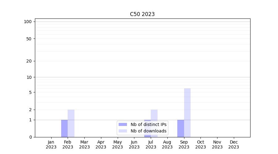 Number of downloads for software package C50, year by year, from 2025 back to 2014 (years with no downloads are omitted):