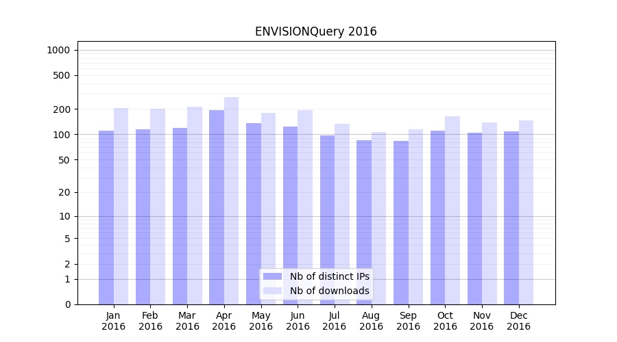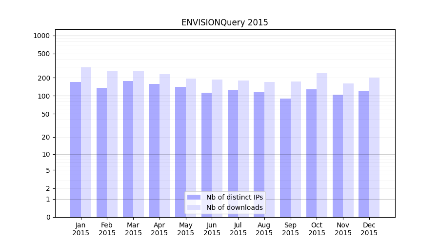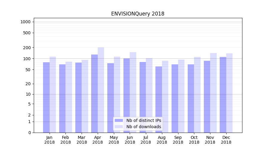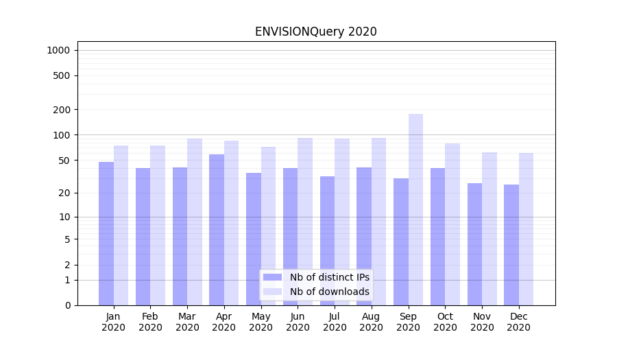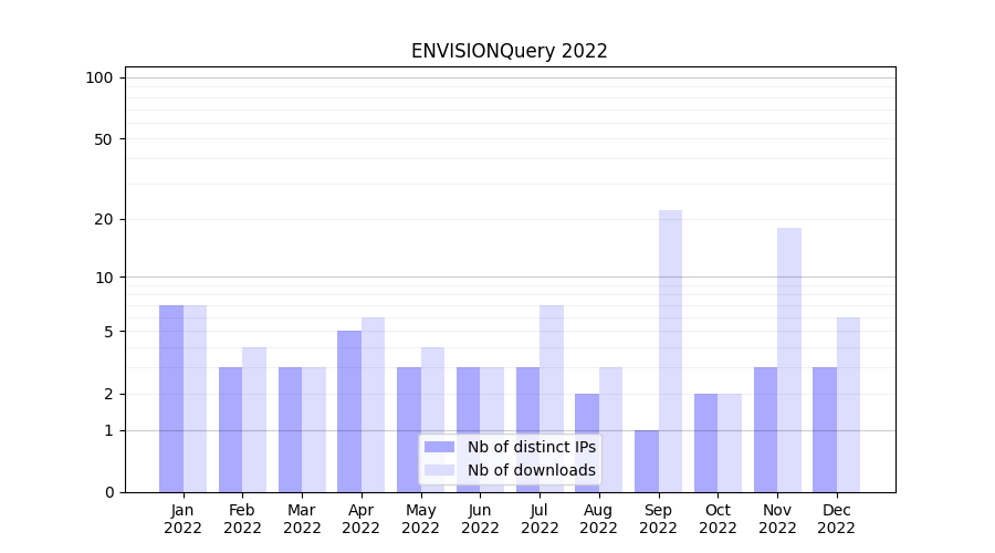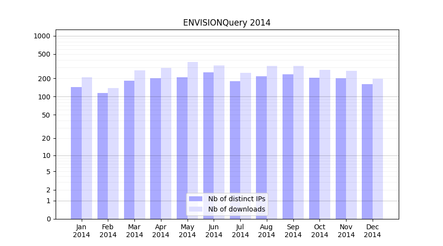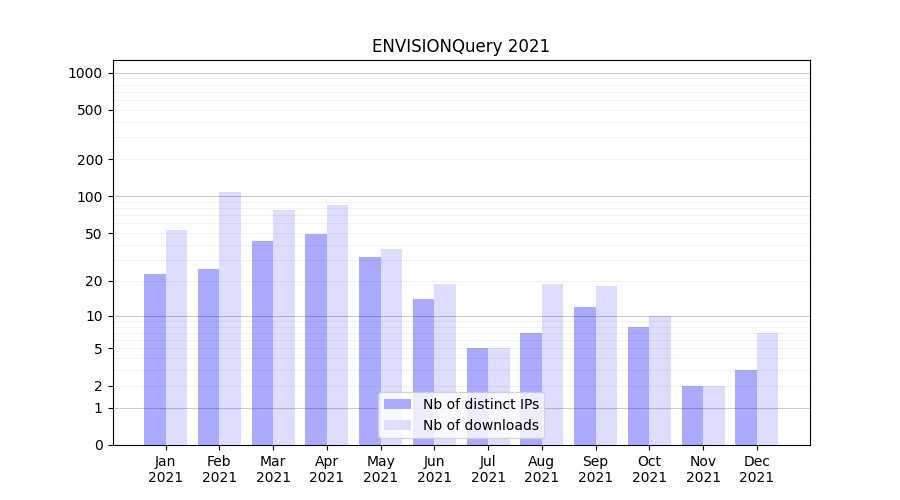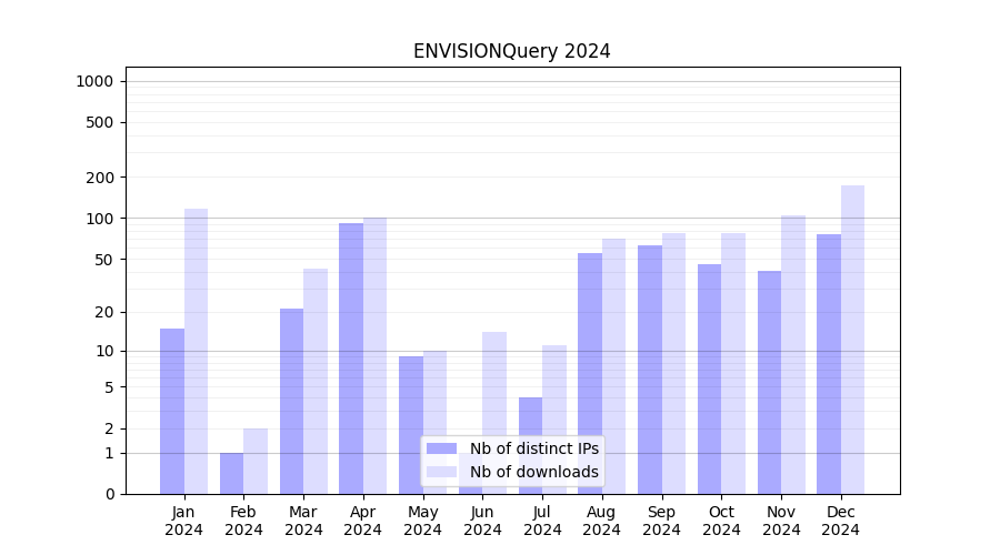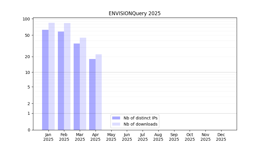 Number of downloads for software package ENVISIONQuery, year by year, from 2025 back to 2014 (years with no downloads are omitted):