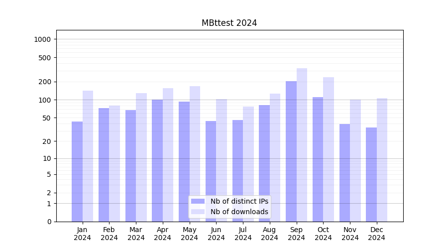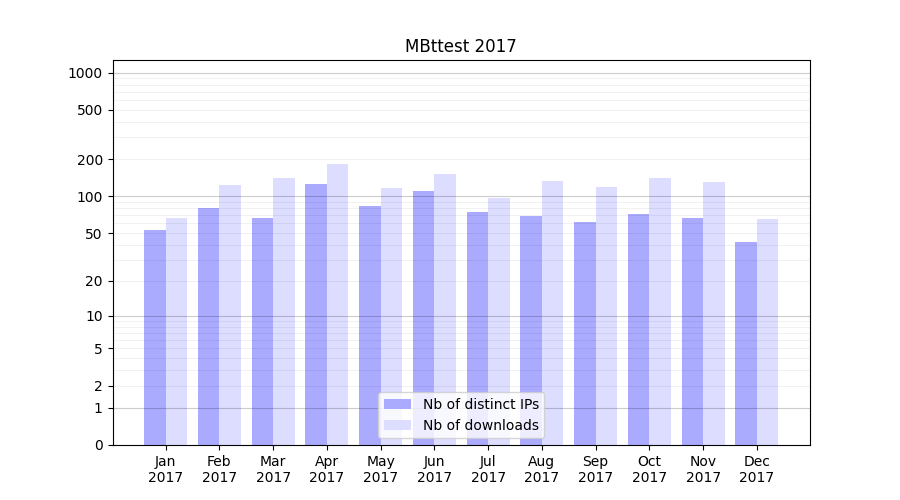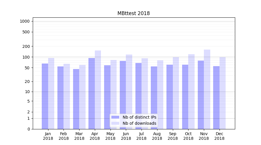 | Month | Nb of distinct IPs | Nb of downloads |