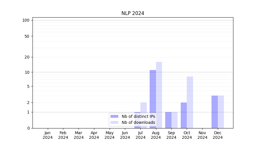 Number of downloads for software package NLP, year by year, from 2025 back to 2014 (years with no downloads are omitted):