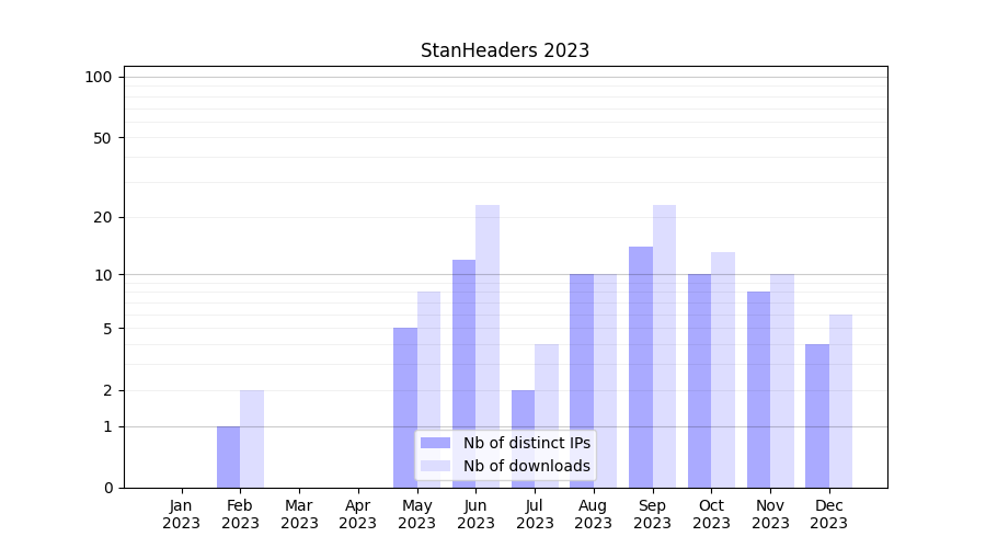 | Month | Nb of distinct IPs | Nb of downloads |