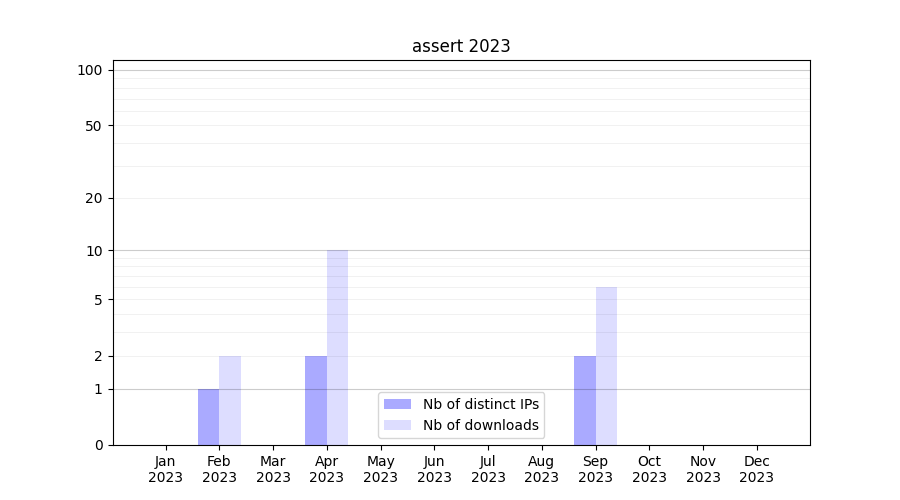 Number of downloads for software package assert, year by year, from 2025 back to 2014 (years with no downloads are omitted):