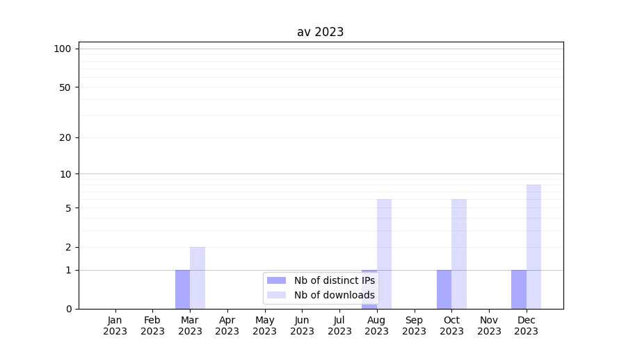 Number of downloads for software package av, year by year, from 2025 back to 2014 (years with no downloads are omitted):